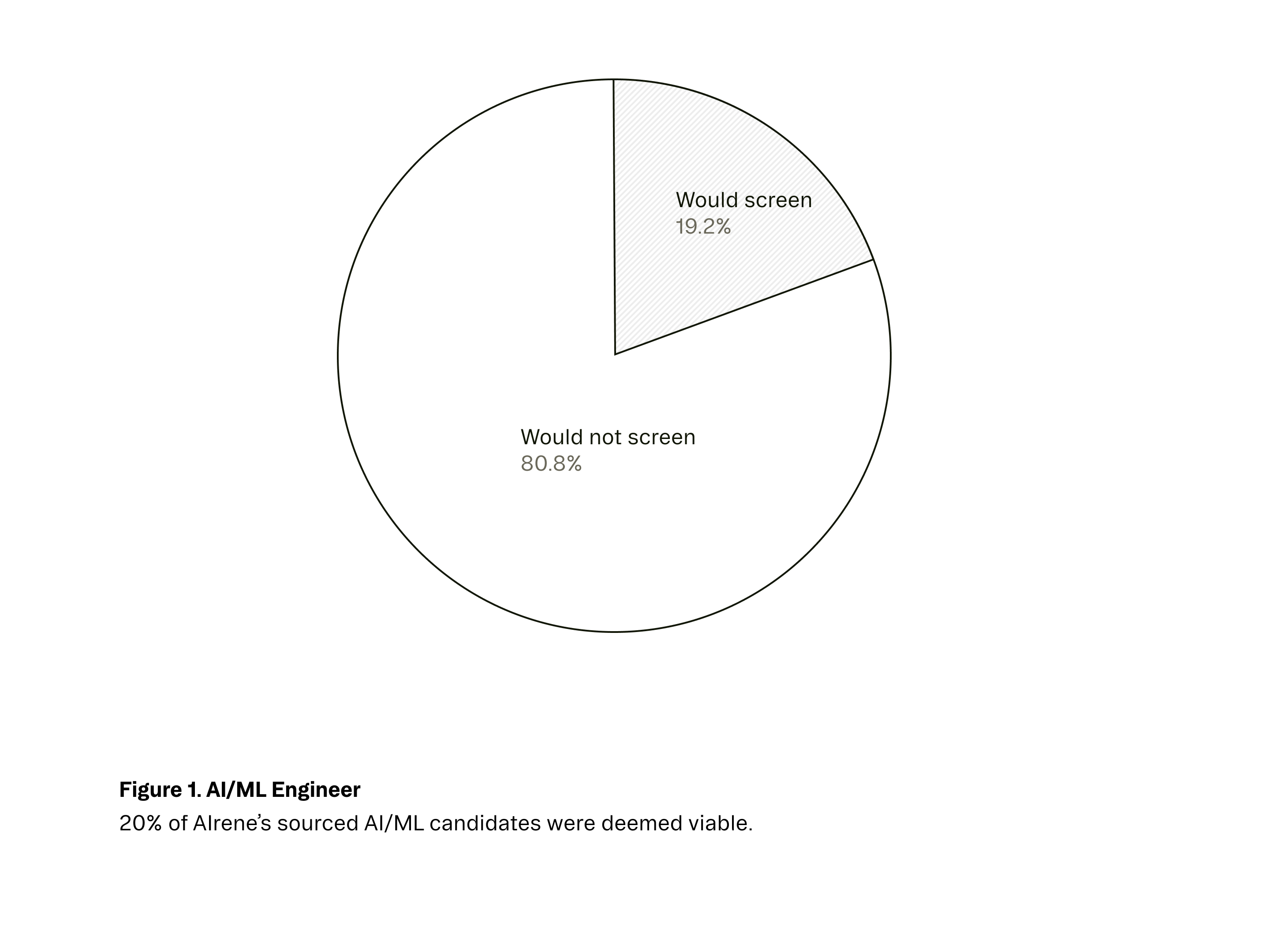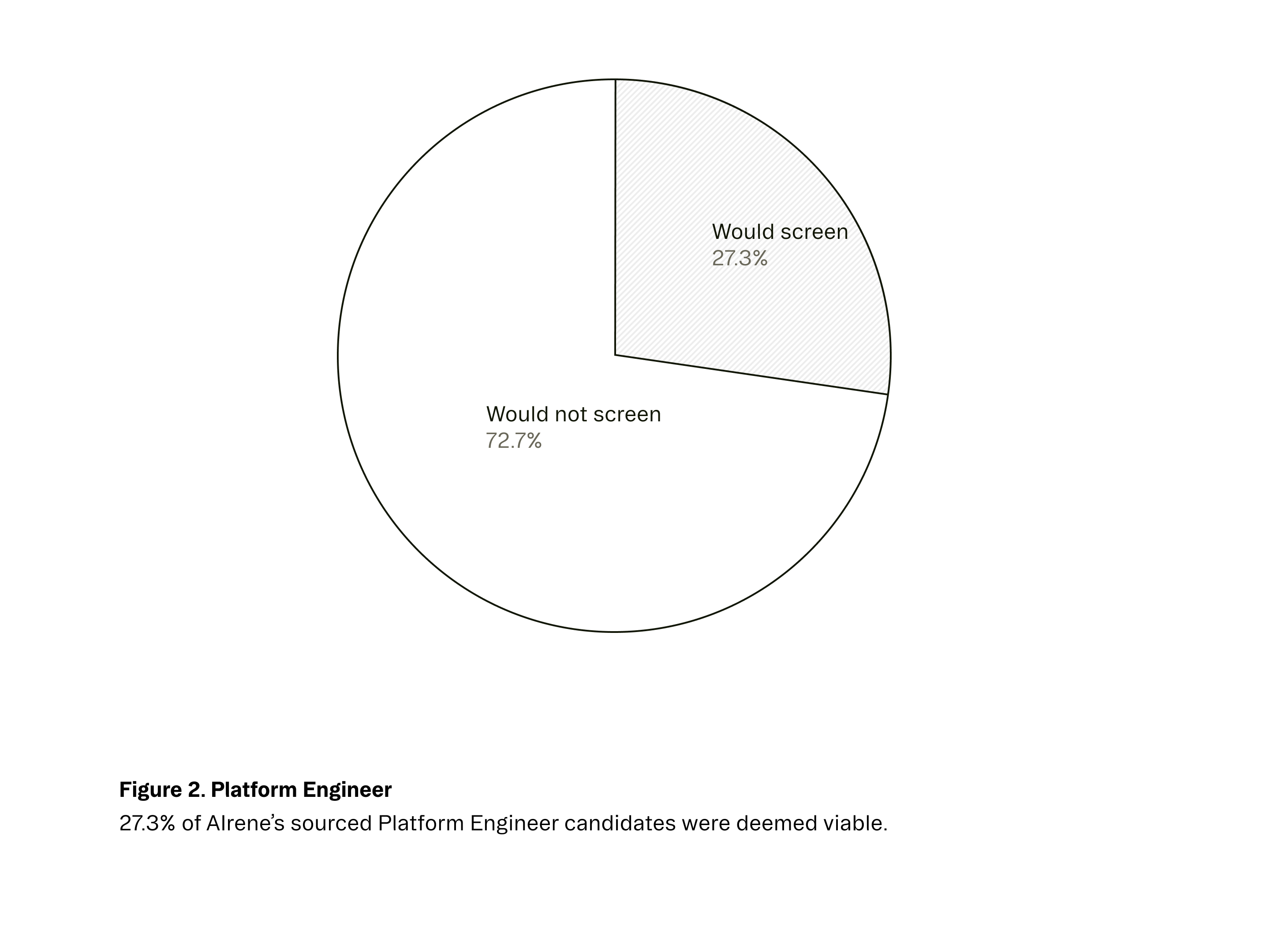 We are encouraged by the early results and continue evaluating AIrene as part of an internal experiment exploring how AI might support recruiting workflows. Below are screening rate results for our engineering roles. In each chart, “Would screen” indicates that the system surfaced a candidate our in-house recruiters said they would reach out to.