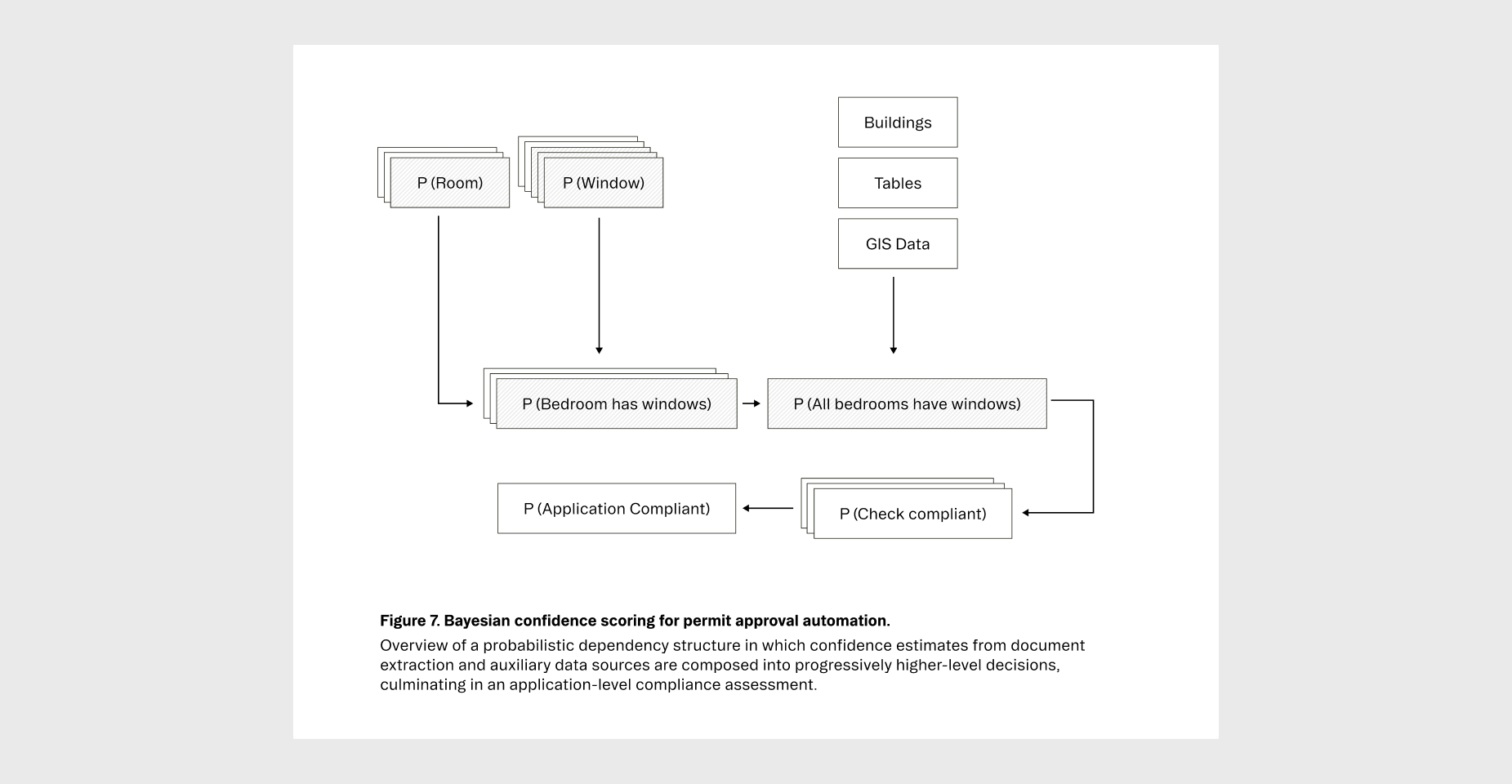 Brain Co. uses a Bayesian Network approach to confidence scoring that enables full automation of the building permit approval process (Figure 1).